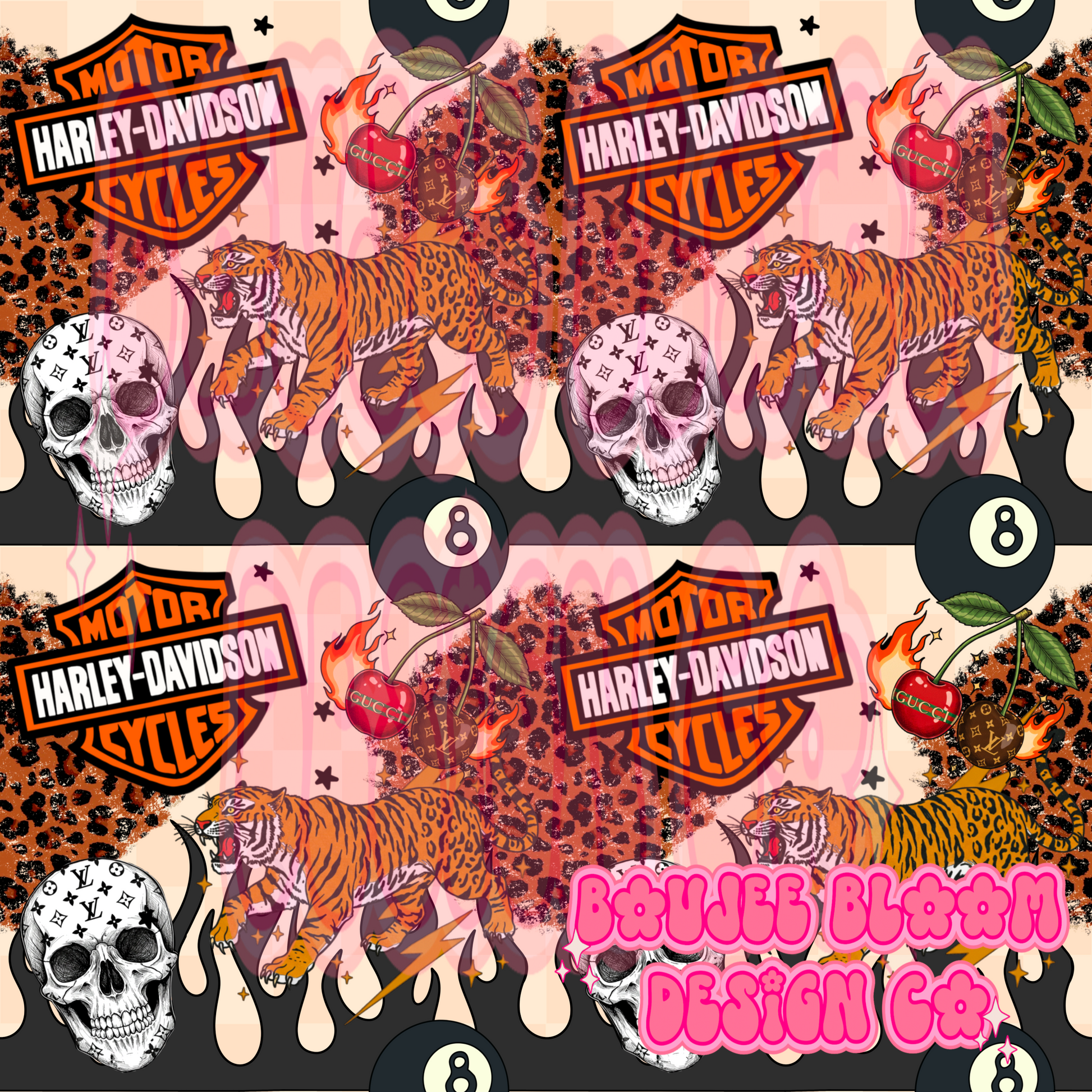 Boujee Biker Black Flames Seamless